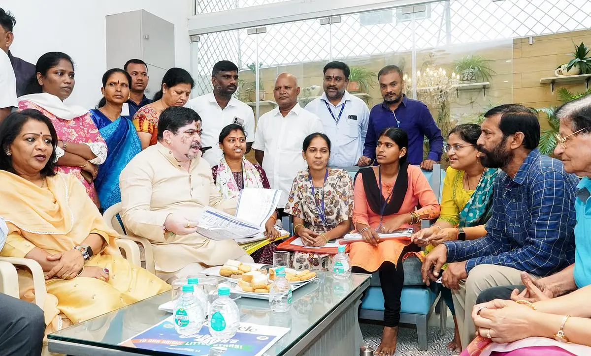 तेलंगाना के परिवहन और बीसी कल्याण विभाग के मंत्री, पोन्नम प्रभाकर, जीएचएमसी मेयर गडवाल विजया लक्ष्मी के साथ, 14 नवंबर, 2024 को हैदराबाद में एन्क्लेव अपार्टमेंट, बंजारा हिल्स में एक जाति सर्वेक्षण में भाग लेते हैं। फोटो साभार: एएनआई