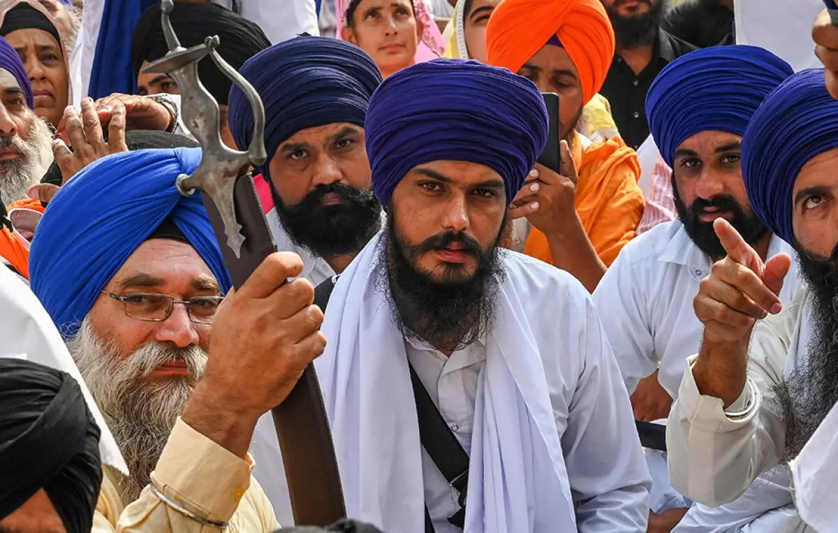 अमृतपाल सिंह, भक्तों के साथ, 30 अक्टूबर, 2022 को स्वर्ण मंदिर में अकाल तख्त साहिब पर एक सिख दीक्षा संस्कार समारोह में भाग लेते हैं। एक फायरब्रांड सिख अलगाववादी, उन्होंने संसदीय चुनाव लड़ते हुए लगभग 2,00,000 वोटों के अंतर से जीत हासिल की। जेल से. | फोटो साभार: एएफपी