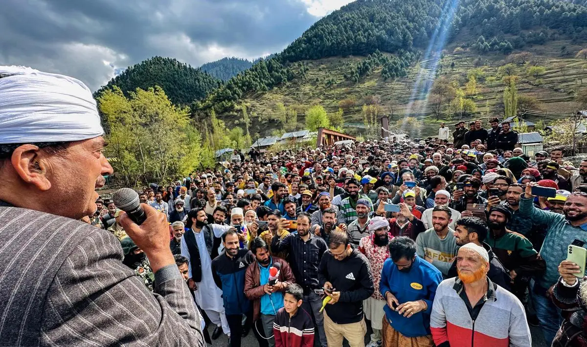 आज़ाद ने अप्रैल, 2024 में डोरू, अनंतनाग जिले में लोकसभा चुनाव से पहले एक सार्वजनिक बैठक को संबोधित किया। उनके अधिकांश राजनीतिक करियर को जम्मू -कश्मीर के बाहर आकार दिया गया था, जिसमें कांग्रेस द्वारा राज्यसभा को उनके नामांकन के साथ। | फोटो क्रेडिट: पीटीआई