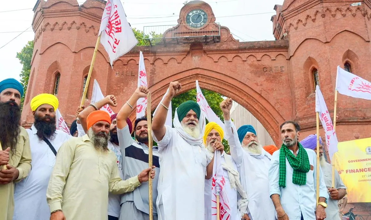 1 अगस्त को अमृतसर में किसानों ने हरियाणा और केंद्र सरकार के खिलाफ विरोध प्रदर्शन के दौरान नारे लगाए फोटो साभार: पीटीआई